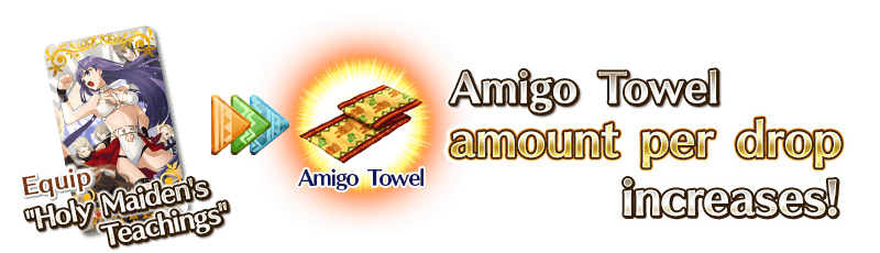 Equip Event Limited Craft Essence "Holy Maiden's Teachings" to gain a bonus to the amount of event item "Amigo Towel" per drop!