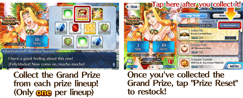 Once you've claimed the Grand Prize and all other items you want, tap "Prize Reset" to replenish the Grand Prize!
