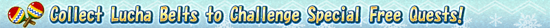 These special Free Quests will require you to expend five "Lucha Belts" to challenge the quest once. Clear these quests to gather large amounts of event items.
