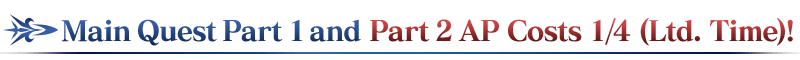 For a limited time, story quests within Main Quest Part 1 and Part 2 will have their AP costs cut to 1/4!