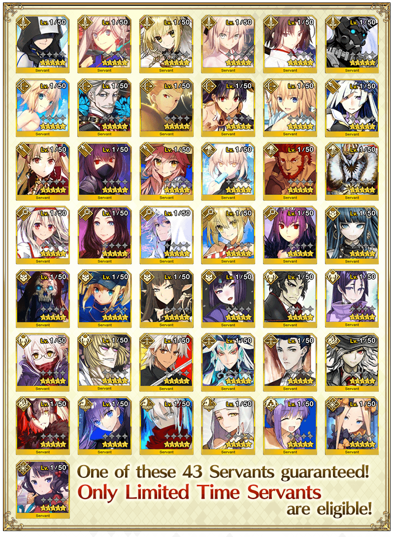 * The guaranteed ★4 (SR) or above card can be either a Servant or a Craft Essence.
