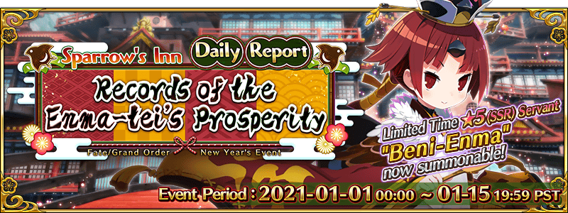 For details about the Limited Time Event "Sparrow's Inn Daily Report: Records of the Enma-tei's Prosperity" and the ongoing "Sparrow's Inn Daily Report Pickup Summon (Daily)," please see the articles linked below.