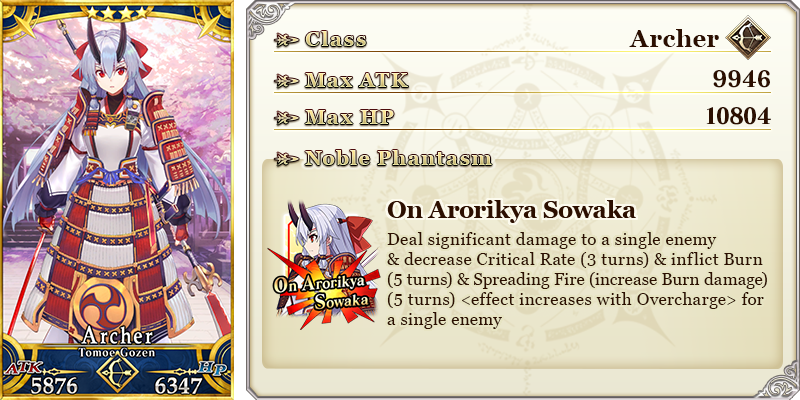 See "★4 (SR) Diarmuid Ua Duibhne (Saber)" and "★4 (SR) Archer of Inferno (Tomoe Gozen)" in action on YouTube, where we're sharing an exclusive video of their Noble Phantasms!