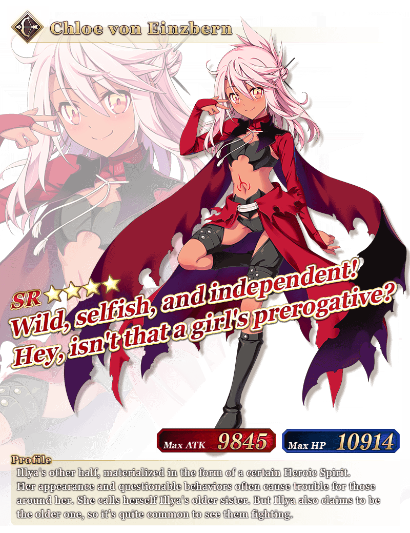 | +100% | +50% | Archer | ★★★★ | Chloe von Einzbern |