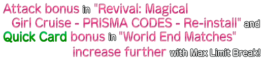 - Clear all "World End Matches" and a certain event quest within "Revival: Magical Girl Cruise - PRISMA CODES - Re-install".