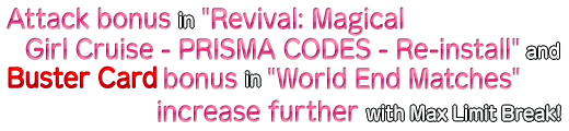 Masters who have cleared "Final Singularity" will be eligible to challenge a High Difficulty "Challenge Quest" after clearing all "World End Matches" and a certain quest within the Collaboration Event "Revival: Magical Girl Cruise - PRISMA CODES - Re-install".
