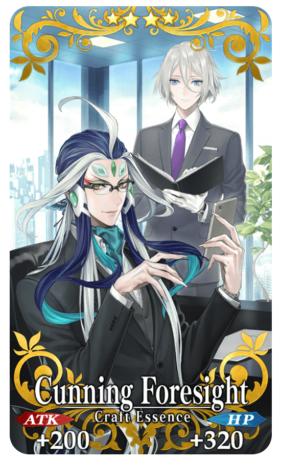 ★★★★SR Cunning Foresight ATK 200 (MAX: 750) HP 320 (MAX: 1200) Skill Apply Sure Hit & increase NP Gain by 15% for yourself + Increase amount of Tricky Cloth per drop by 1 [Event Only]
