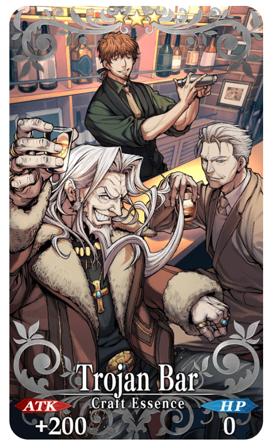 ★★★R Trojan Bar ATK 200 (MAX: 1000) HP 0 Skill Increase NP Gauge by 1% each turn & increase NP Strength by 5% for yourself + Increase amount of Spiderweb Coaster per drop by 1 [Event Only]