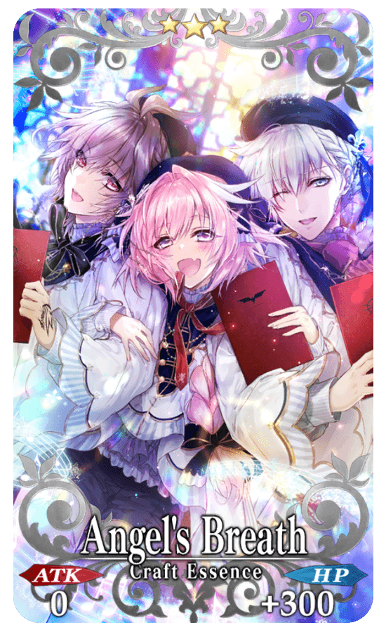 ★★★R Angel's Breath ATK 0 HP 300 (MAX: 1500) Skill Increase HP Recovery amount by 5% & NP Gain by 5% for yourself + Increase amount of Spiderweb Coaster per drop by 1 [Event Only]
