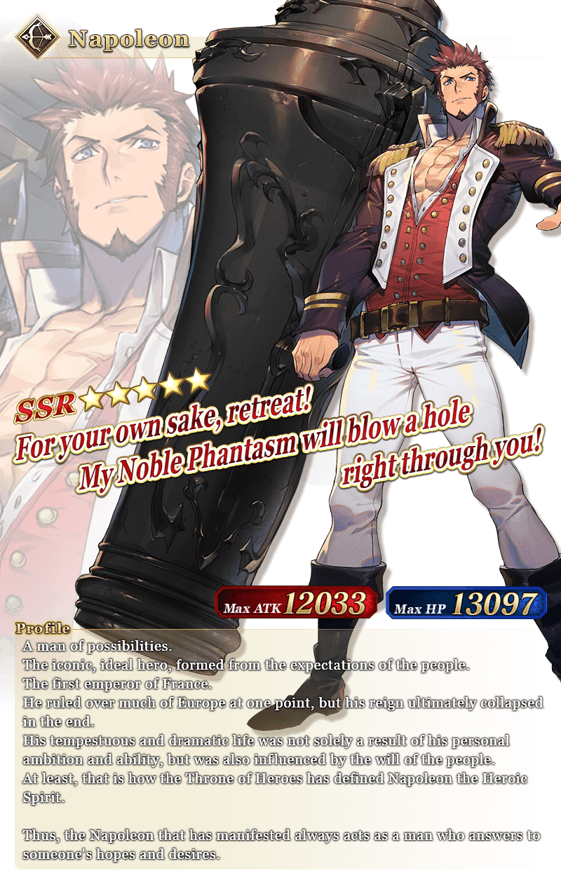 | 2021-03-19 21:00 - 03-20 20:59 PDT | Archer of Shinjuku (James Moriarty) Napoleon Prince of Lan Ling Assassin of Shinjuku (Yan Qing) Alexander |