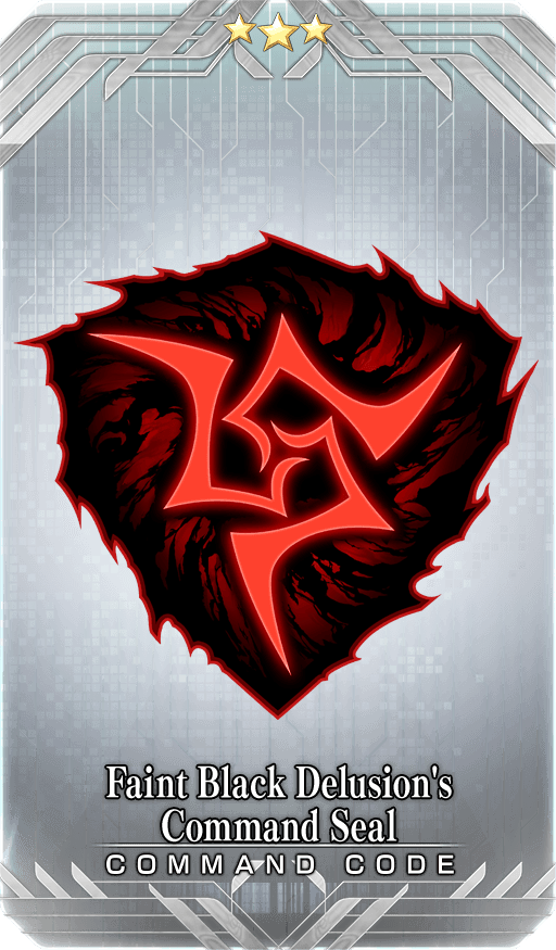 ★★★R Faint Black Delusion's Command Seal Skill Inflict Poison (600 damage, 3 turns) to a single enemy + Decrease 100 HP (leave at least 1) [Demerit] when attacking with the engraved Card |