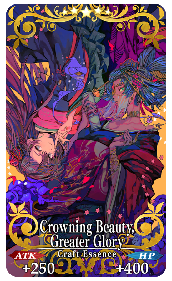 Servants equipped with Event Limited Craft Essence "★5 (SSR) Crowning Beauty, Greater Glory", available through Event Item Exchange, will receive an ATK bonus within Event Quests.