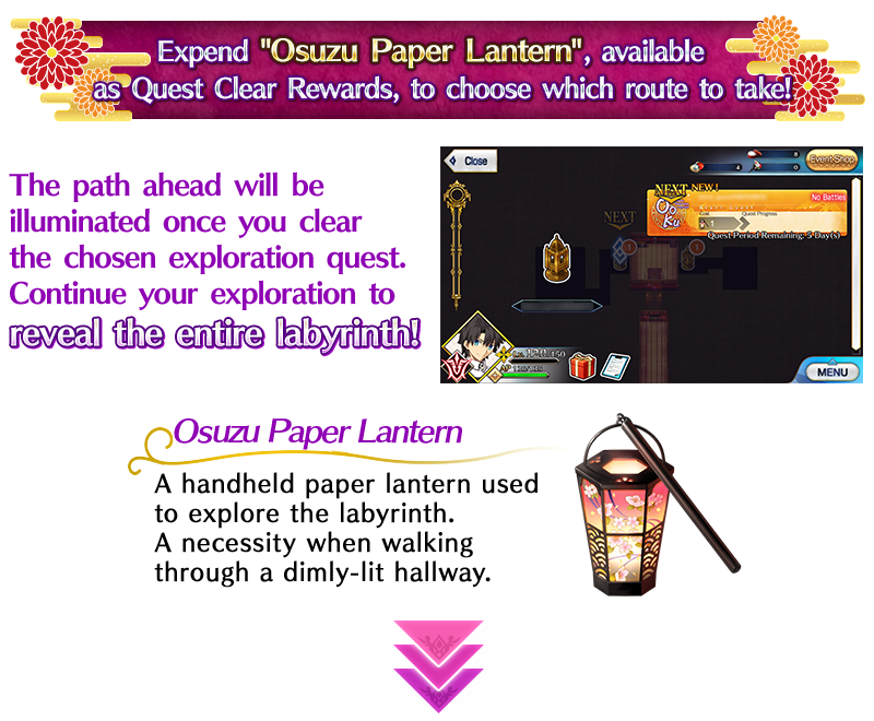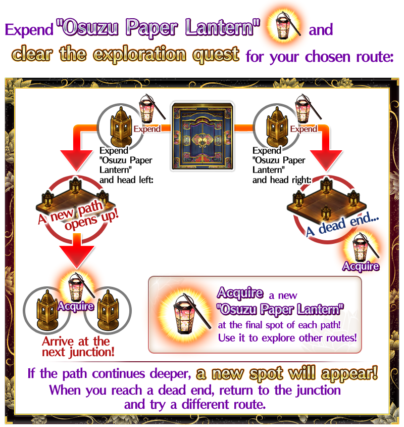 Once you expend an "Osuzu Paper Lantern" to execute one of the exploration quests, a new spot will appear, allowing you to venture further into the labyrinth.
