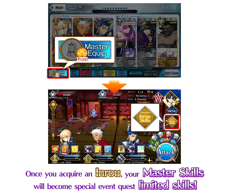 Once you have an "Inrou", the Master Skills available within Event Quest battles will change from your Mystic Code skills to unique "Inrou Skills".