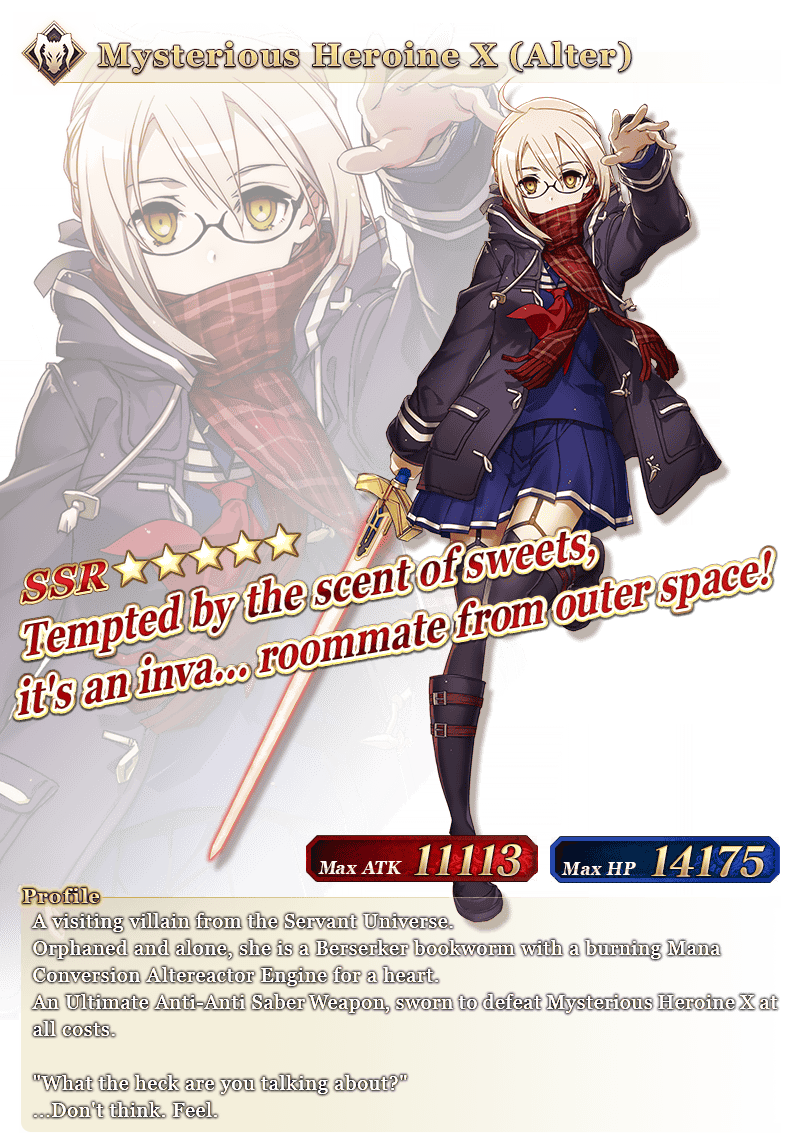 * Mysterious Heroine X (Alter) will not be added to Story Summon after the Pickup Summon period ends.