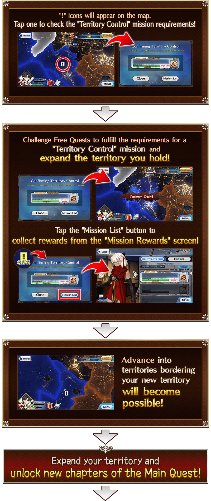 * Please note that mission rewards will NOT be awarded automatically when you fulfill a mission's requirements. * Please note that new missions or spots on the map will not be unlocked until you claim the related mission rewards.