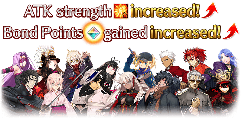 Certain Servants will receive bonuses to their "ATK strength" and "Bond Points Acquired" within this event.