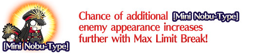 * [Mini Nobu-Type] enemies includes other event limited enemies such as "Big Nobu." * Please note that the maximum chance of additional enemy appearance is 100%, even if a total higher than 100% is displayed.