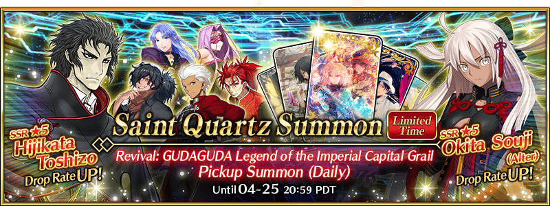 The Limited Time "Revival: GUDAGUDA Legend of the Imperial Capital Grail Pickup Summon (Daily)" is also ongoing!