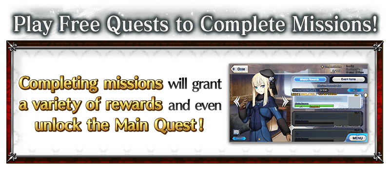 * Quest clear rewards, dropped items, Master EXP, Mystic Code EXP, and Bond Points will only be rewarded for the first clear.