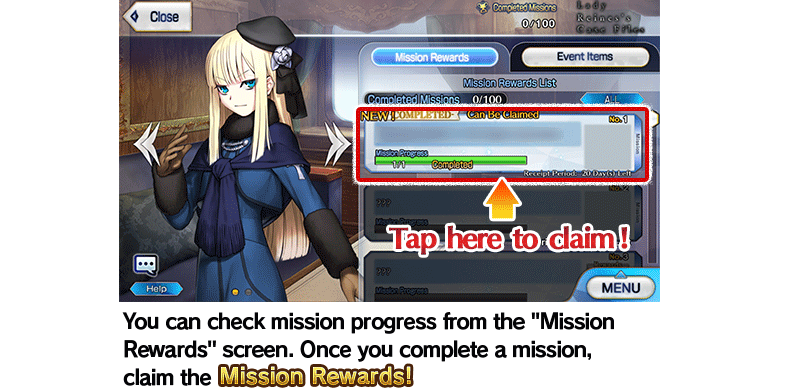 * Please note that new missions or spots on the map will not be unlocked until you claim the related mission rewards.