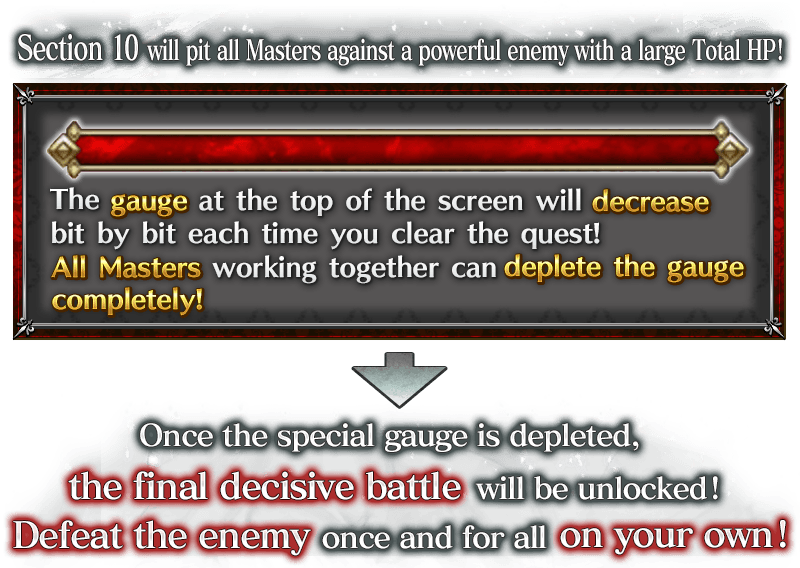 In Section 10, unique battles requiring all Masters to fight together against a single powerful enemy will appear.