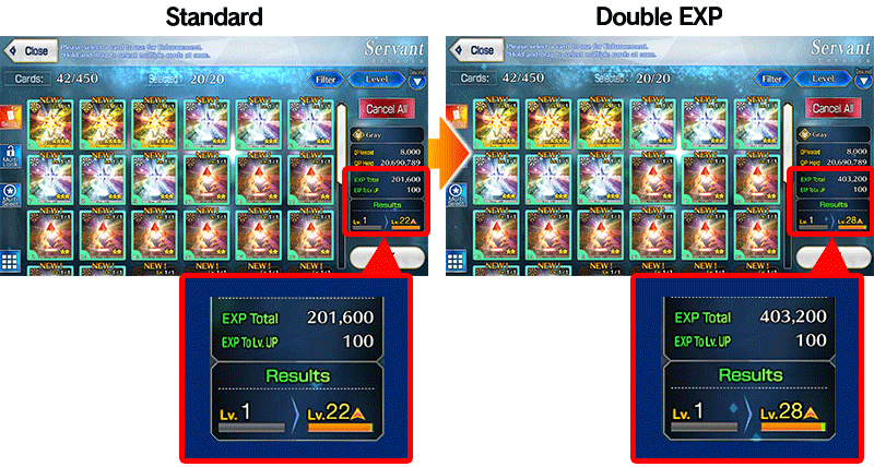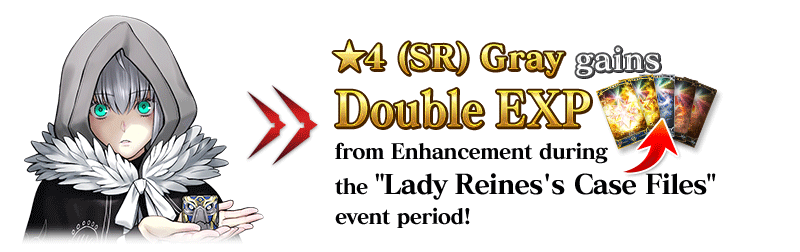 For the duration of the event period, "★4 (SR) Gray" will receive double EXP when performing Enhancement.