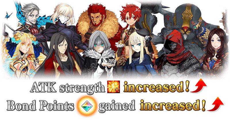During the event period, certain Servants will be eligible to receive a bonus to their ATK strength within event quests!