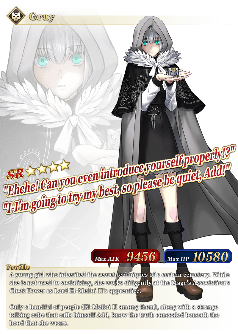 * The Limited Time Servant "★4 (SR) Gray" will officially join your roster once you clear the Epilogue. The Epilogue will be unlocked at a later date.