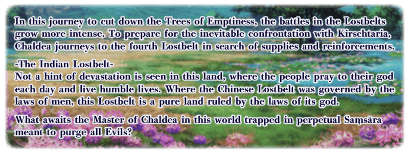 India is the setting for "Saṃsāra of Genesis and Terminus, Yugakshetra - The Final Dark God", the fourth Lostbelt.