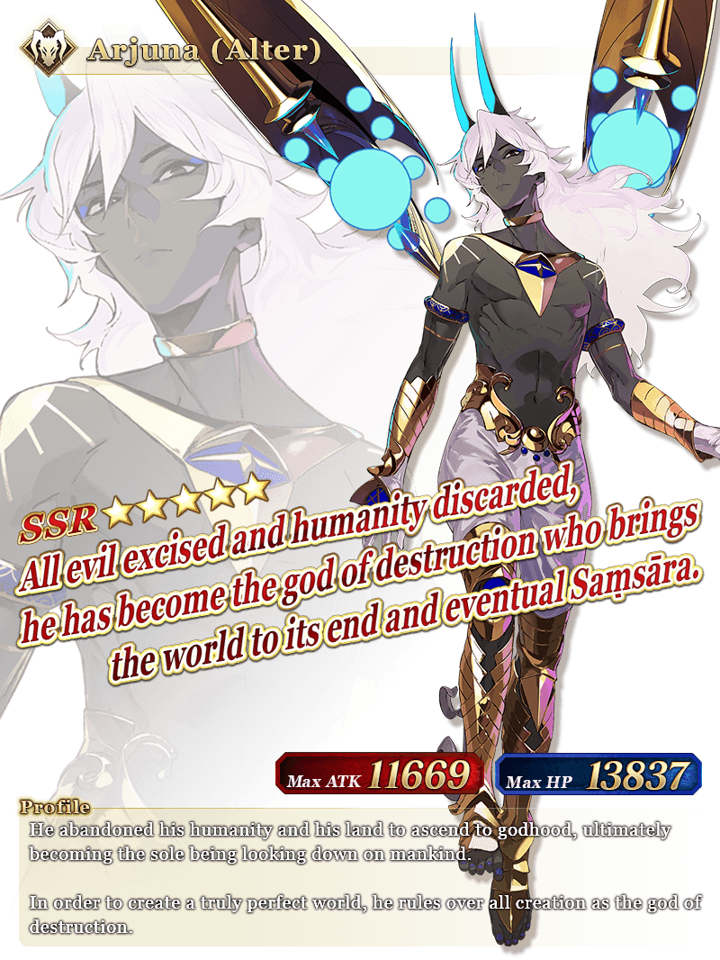 From Part 2 Chapter 4 “Lostbelt No.4: Saṃsāra of Genesis and Terminus, Yugakshetra - The Final Dark God”, “★5 (SSR) Arjuna (Alter)” will be summonable for a limited time only!