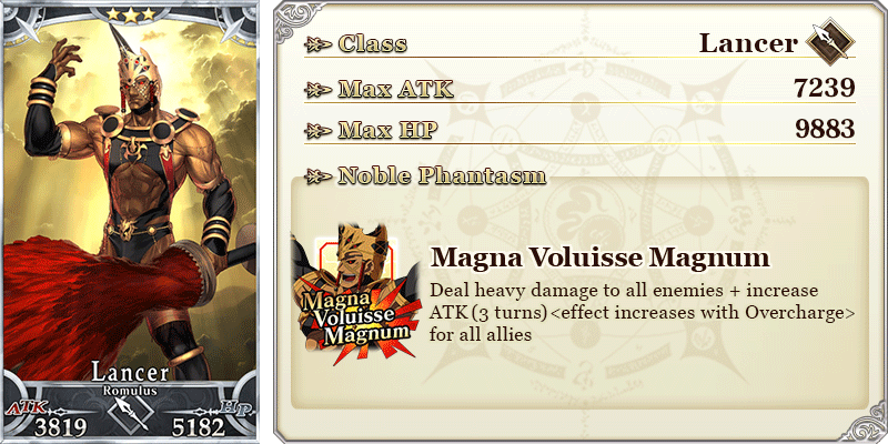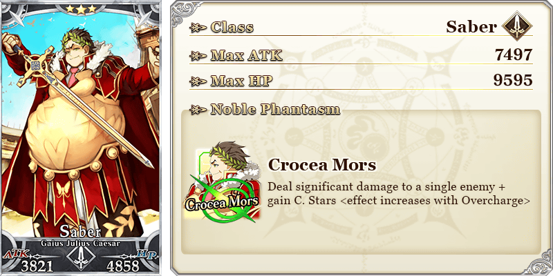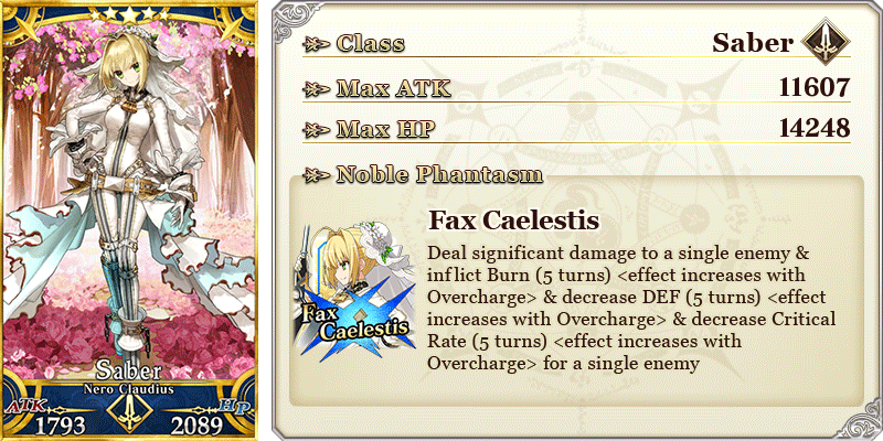 * Nero Claudius (Saber), Gaius Julius Caesar, and Romulus will continue to be available through Story Summon after the Pickup Summon period ends.