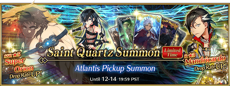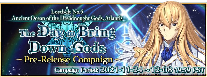 For more information about the Limited Time "Atlantis Pickup Summon" and the "Lostbelt No.5: Ancient Ocean of the Dreadnought Gods, Atlantis - The Day to Bring Down Gods" Pre-Release Campaign, please see the articles linked below.
