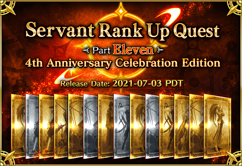 We're releasing the eleventh batch of "Servant Rank Up Quests", special quests that enhance your Servants' abilities.