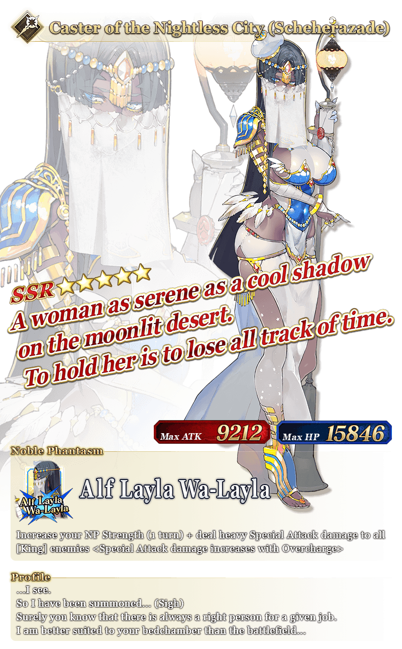 - ★5 (SSR) Caster of the Nightless City (Scheherazade)