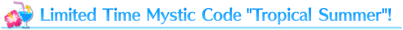 The Mystic Code "Tropical Summer" is available only within the Limited Time Event "Revival: Servant Summer Festival! Lite"!