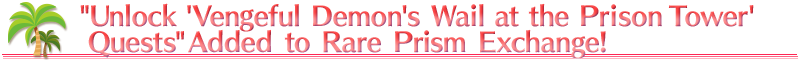 * The Quest Unlock item for the event "Vengeful Demon's Wail at the Prison Tower" will be permanently added to "Exchange Rare Prisms". There will be no time limit on exchange.
