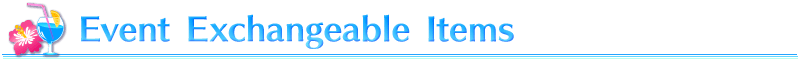 Event items can be exchanged for the following items through "Event Item Exchange", accessible from the "Event Rewards" button in the upper right corner of the Terminal.