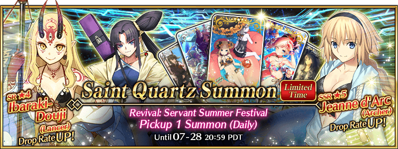 "Revival: Servant Summer Festival Pickup 1 Summon (Daily)" Details: