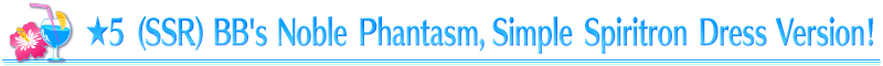 * The Spiritron Dress Wardrobe Keys added for "★5 (SSR) BB" will be available only during the event period of the Limited Time Event "Revival: Servant Summer Festival! Lite".
