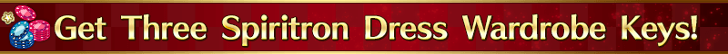 Spiritron Dress Wardrobe Keys will be available for "★5 (SSR) Merlin", "★4 (SR) Siegfried", and "★3 (R) Fuuma 'Evil-wind' Kotarou" within the Limited Time Event "All In! Las Vegas Championship Match - Seven Duels of Swordbeauties!".