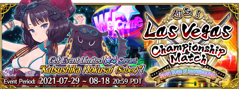 The following Servants related to the Limited Time Event "All In! Las Vegas Championship Match - Seven Duels of Swordbeauties!" will be featured as Pickup Servants!