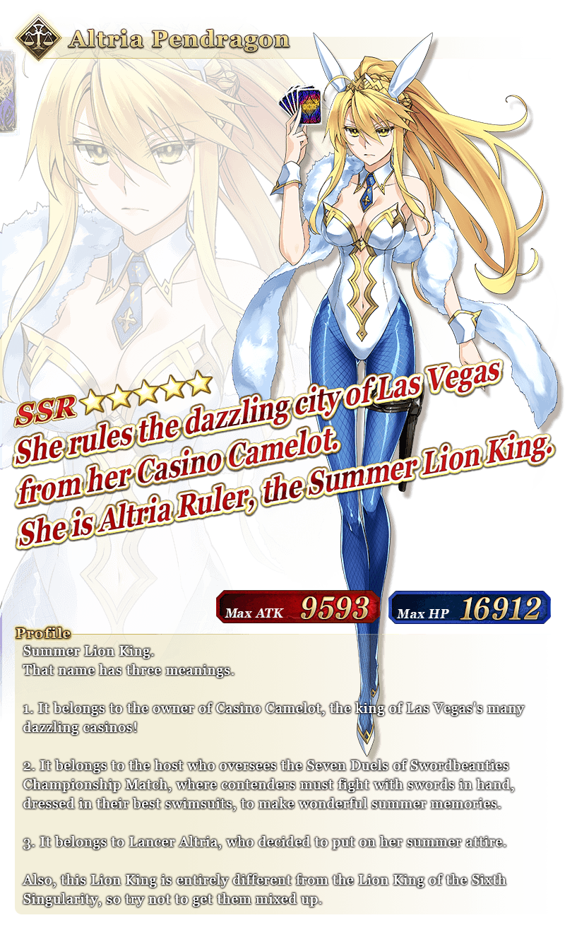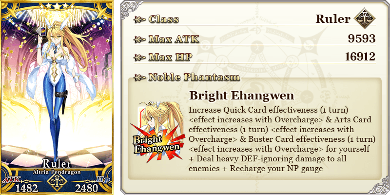 * Noble Phantasm animations for "★5 (SSR) Altria Pendragon (Ruler)" will change according to her Ascension stage.