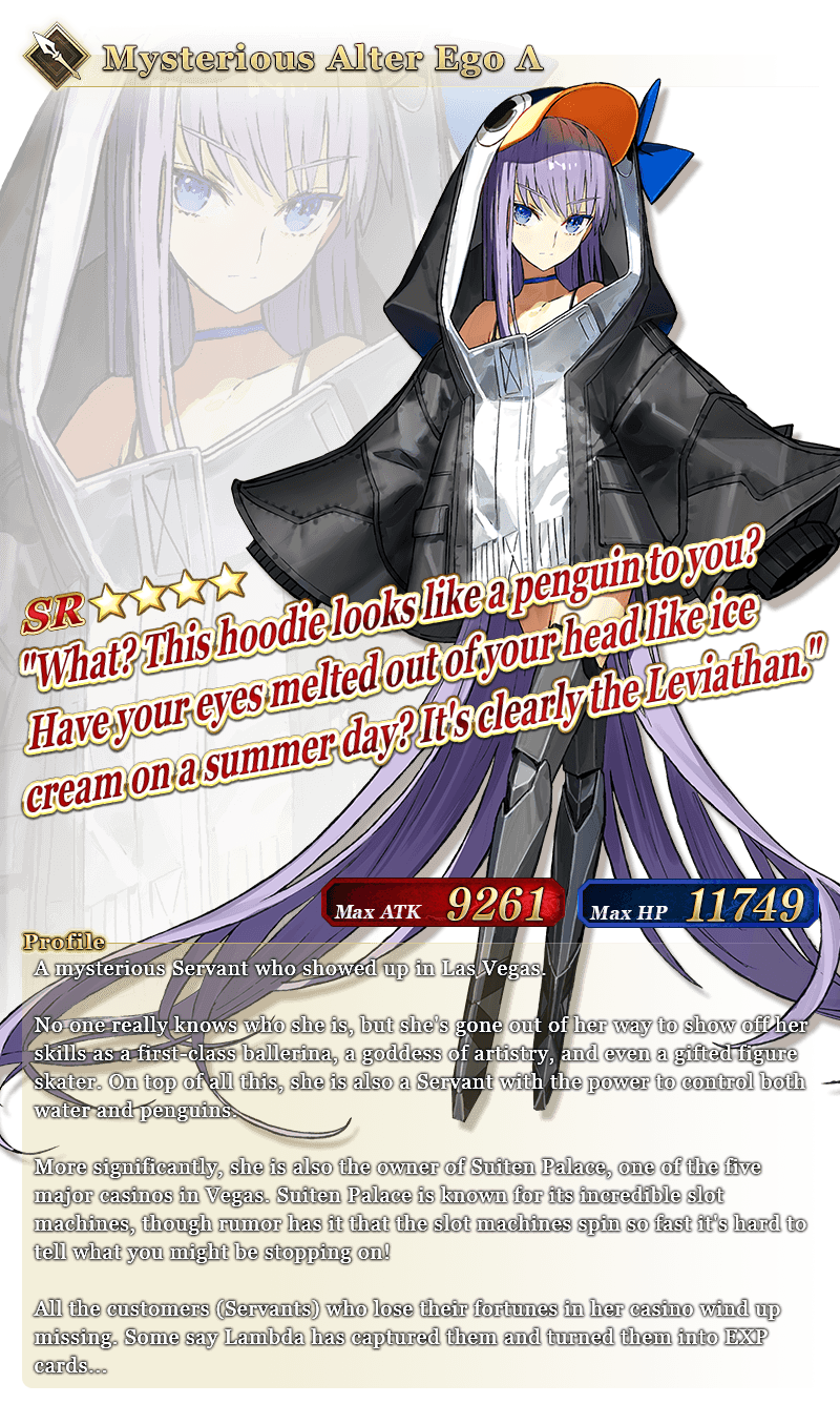 * Please note that while this Servant's name is "Mysterious Alter Ego Λ", her class is Lancer.