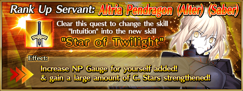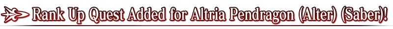 A "Servant Rank Up Quest" will be added for "★4 (SR) Altria Pendragon (Alter) (Saber)" to enhance her abilities.