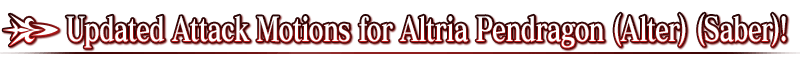 Battle animations will be updated for "★4 (SR) Altria Pendragon (Alter) (Saber)"!