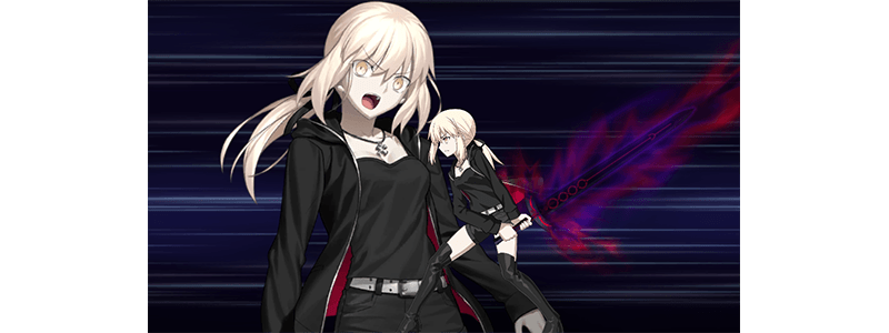 See "★4 (SR) Altria Pendragon (Alter) (Saber)" in action with the new Spiritron Dress "Pitch Black King of Knights, Shinjuku 1999 Ver." equipped!