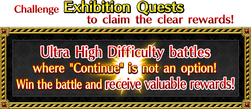 Test your strength against enemies who use unique skills and attack patterns in Exhibition Quests, Ultra High Difficulty Quests where "Continue" is unavailable.