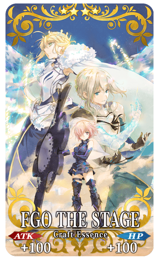 ★★★★SR FGO THE STAGE ATK 100 (MAX: 100) HP 100 (MAX: 100) Skill Increase the amount of Master EXP gained by 50 when a quest is cleared |