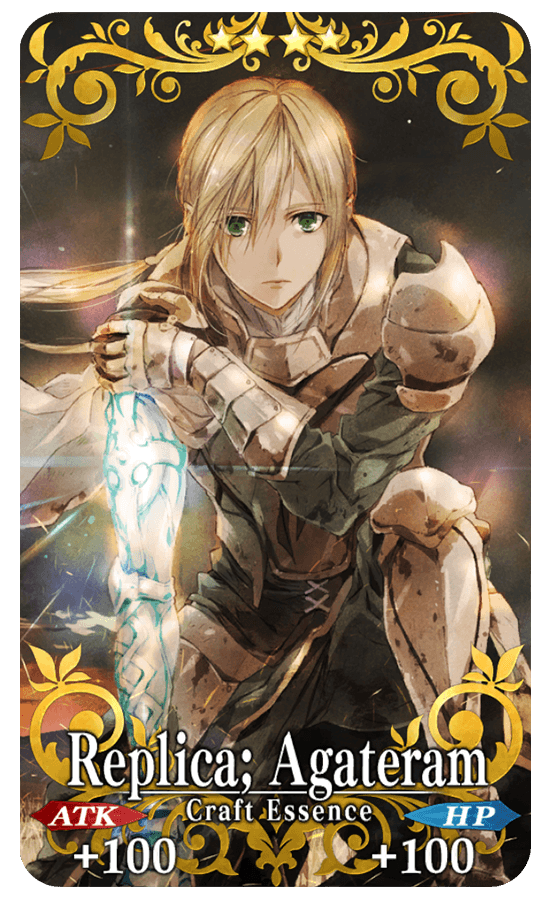 ★★★★SR Replica; Agateram ATK 100 (MAX: 100) HP 100 (MAX: 100) Skill Increase the amount of Master EXP gained by 50 when a quest is cleared |